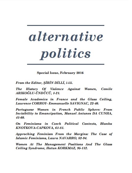 Cemile Arıkoğlu-Ündücü - Kadına Yönelik Şiddetin Tarihi Laurence Corroy & Emmanuelle Savignac - Female Academics in France and the Glass Ceiling ‘Organized Scarcity’? Manuel Antunes da Cunha - Portuguese Women in French Public Sphere: From Invisibility to Emancipation Blanka Knotkova-Capkova - On Feminisms in Czech Political Contexts Laura Navarro - Approaching Feminism From the Margins: The Case of Islamic Feminisms Hatun Korkmaz - Yönetimde Kadın ve Cam Tavan Sendromu |
